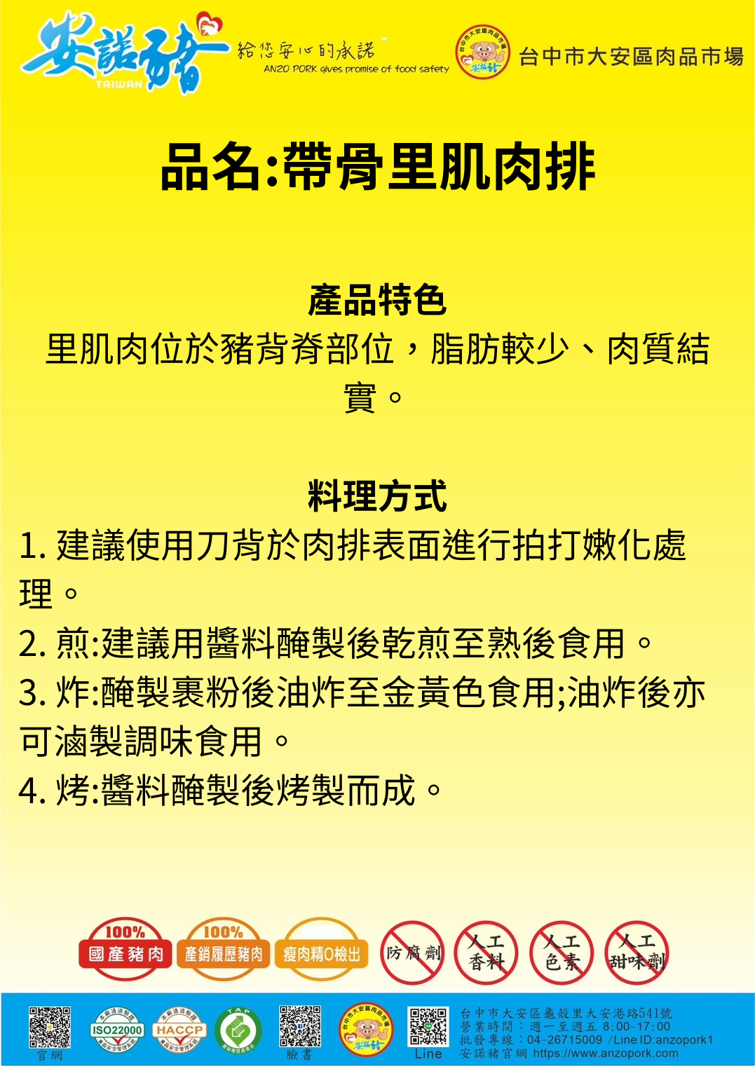 商品品名:【安諾豬】帶骨里肌肉排